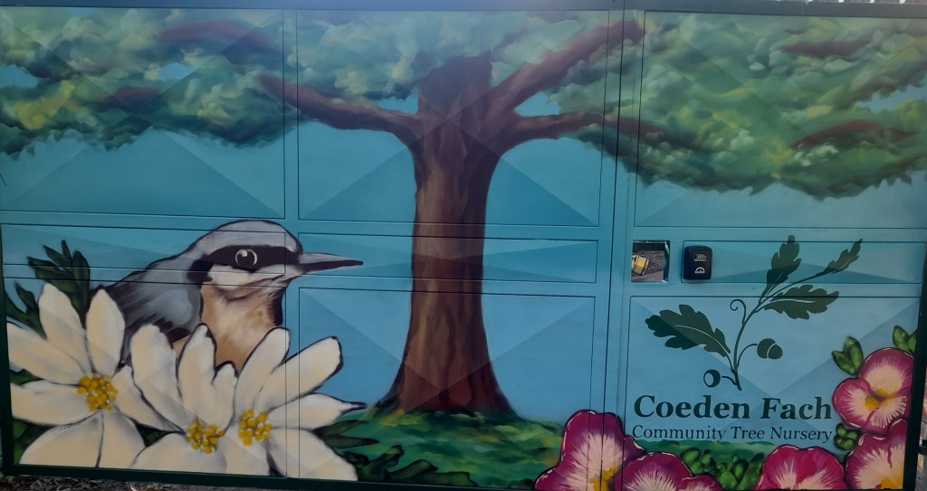 This lovely site is an exciting venture for us and will enable us to have close links with Swansea, enabling increased access for our volunteers. It enables us to diversify and grow a wider selection of trees in order to supply more trees in both the rural and urban areas of Swansea and further afield. We are supporting biodiversity on the site by installing bat and bird boxes, habitat piles and have planted 54 metres of new edible wildlife hedge along the boundary as well as a small orchard and area of wild flower turf.