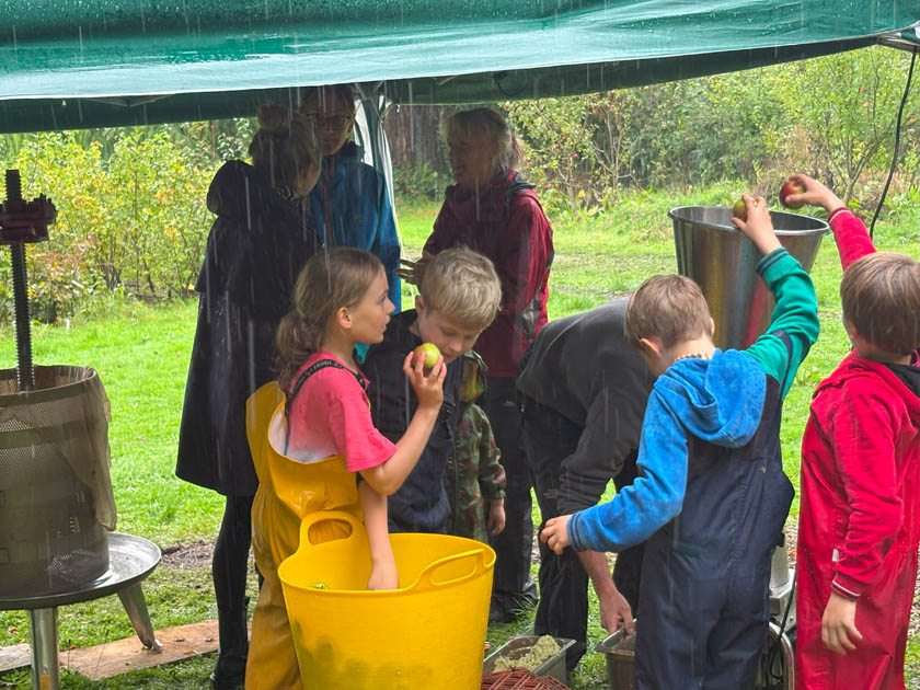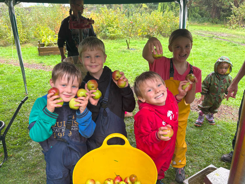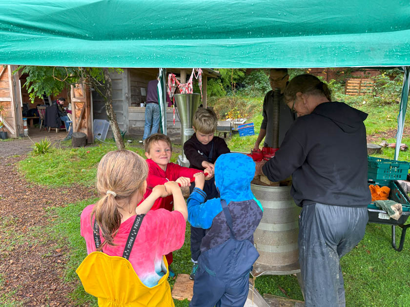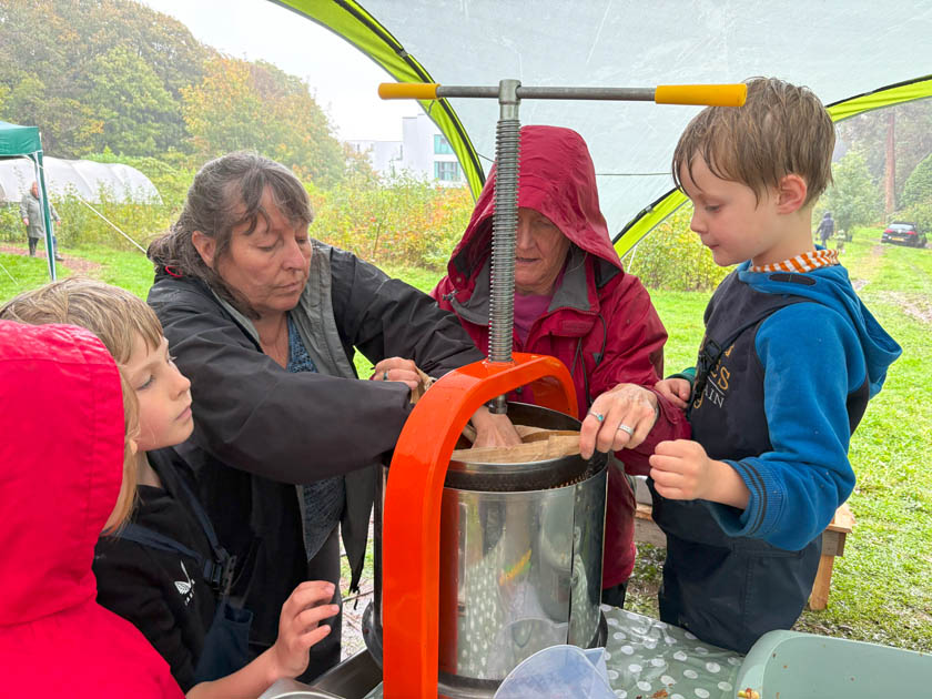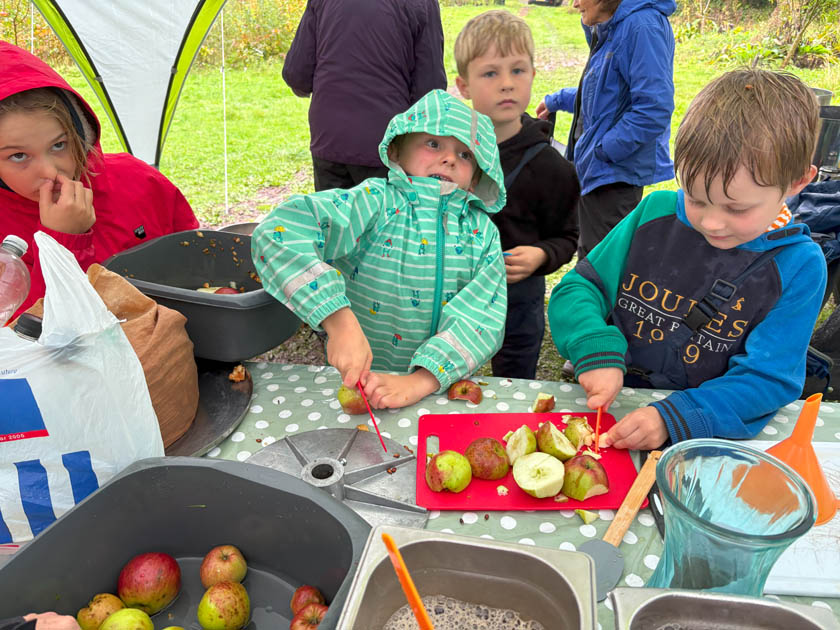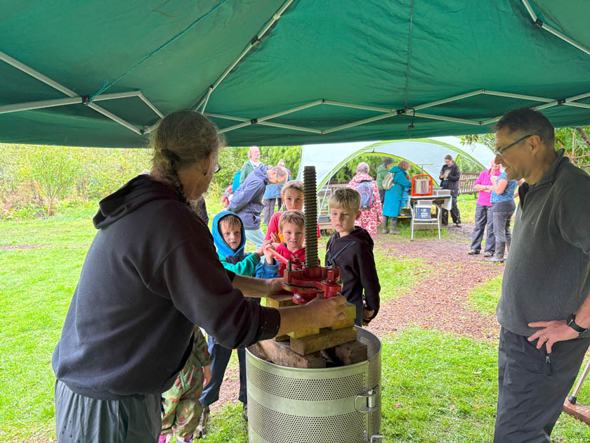 On a very wet Saturday, 20th September 2025, we welcomed around 30 hardy visitors to our Community Apple Juicing Day. Despite the endless rain, everyone threw themselves into the experience and enjoyed learning the full process of turning apples into delicious juice.