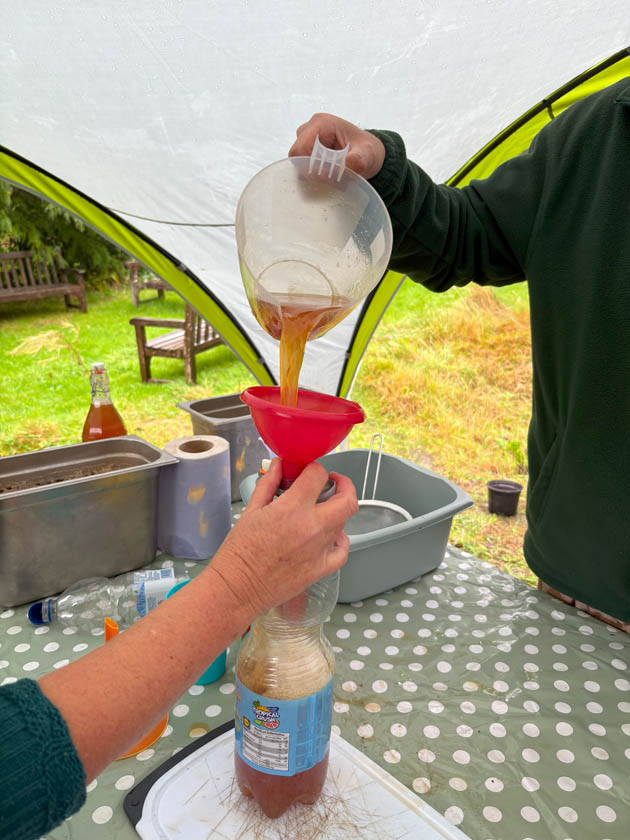 The wonderful result is delicious apple juice which everyone got to try. It was so good one of the children declared “this is much nicer than what we get from the shops“. Praise indeed. So much juice was produced that visitors were able to take some away with them.