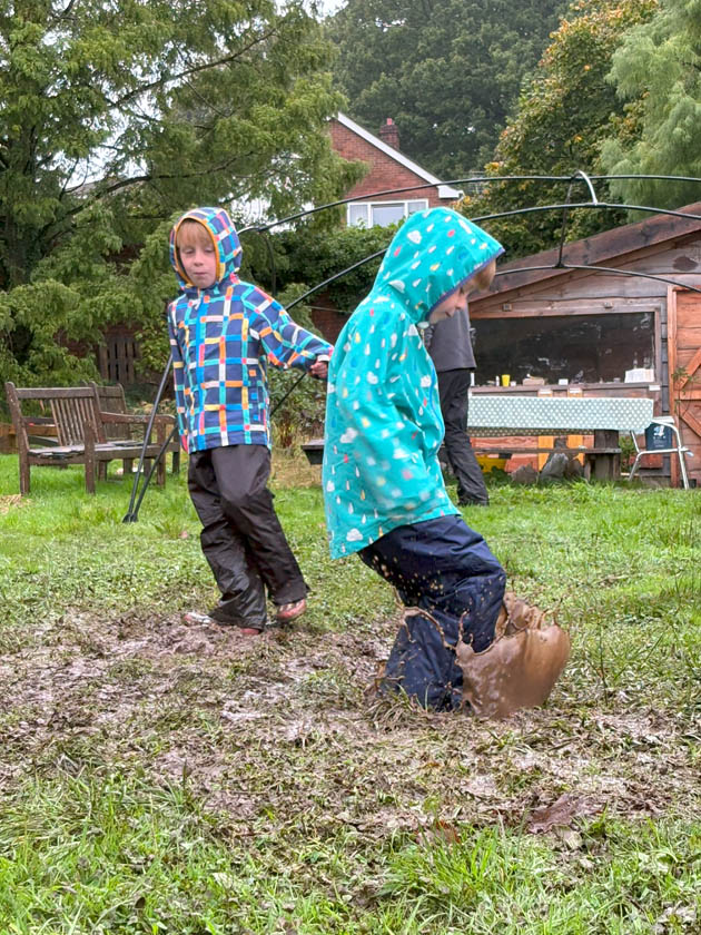 Even the heavy rain couldn’t dampen spirits. While the grown-ups juiced, some of our younger visitors took full advantage of the puddles that had formed on site!