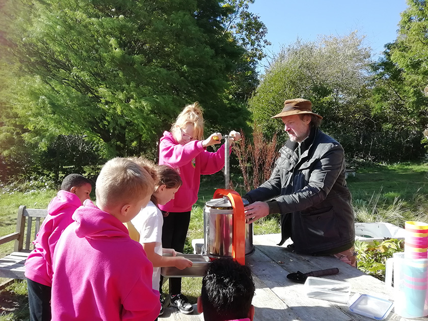 Cyfoeth y Coed and Austin Bailey were able to help us to deliver juicing sessions with nine different schools. We were able to visit several schools where transport to bring the children to site was not available.